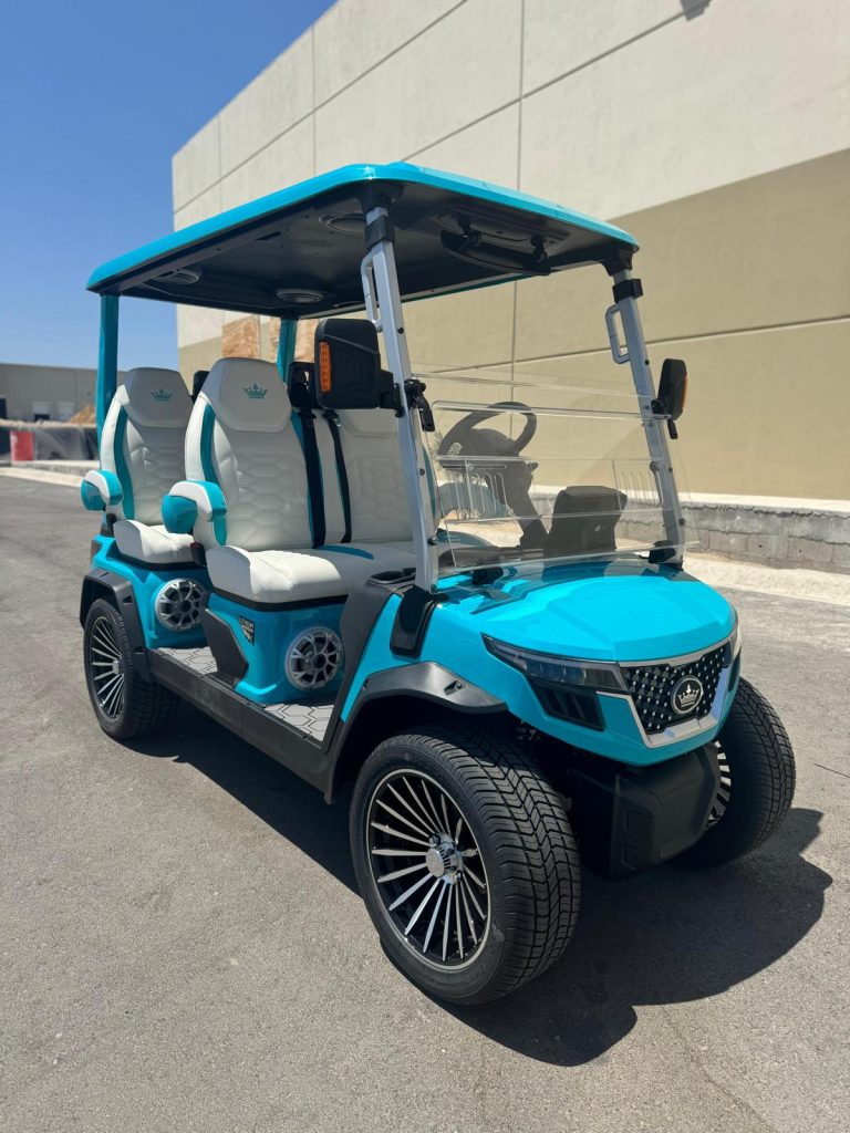 Arriving Soon! Fully loaded Portimao Blue body Luxury upholstery in Ocean Wave Blue 160 AH Lithium Battery Motor: 6.3kw Multifunctional dash with: 10.1″ – inch display: reverse camera and Bluetooth with color changing soundbar, 4 body-mounted speakers & 4 roof mounted speaker sound system Built in dash refrigerator Dual wireless mobile phone charging Rear foldable […]