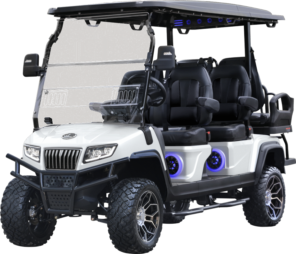 Arriving in December! Fully loaded Arctic Grey body Luxury two tone upholstery (Black and White) 160 AH Battery Motor: 6.3kw 9 – inch display: reverse camera and Bluetooth with color changing soundbar & 4 speaker sound system Removable rear storage compartment with golf bag attachment Rear – facing flip – flop seat with storage compartment […]